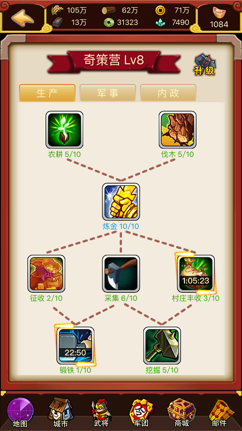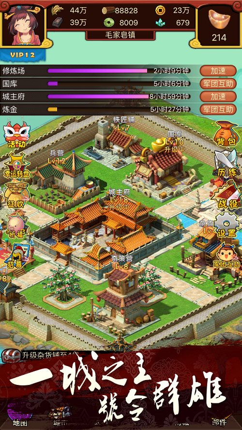 努力发展您自己的城市,占领其他的城市和村庄,与NPC达成契约,管理发展更多的城市来组建属于自己的无敌之师!